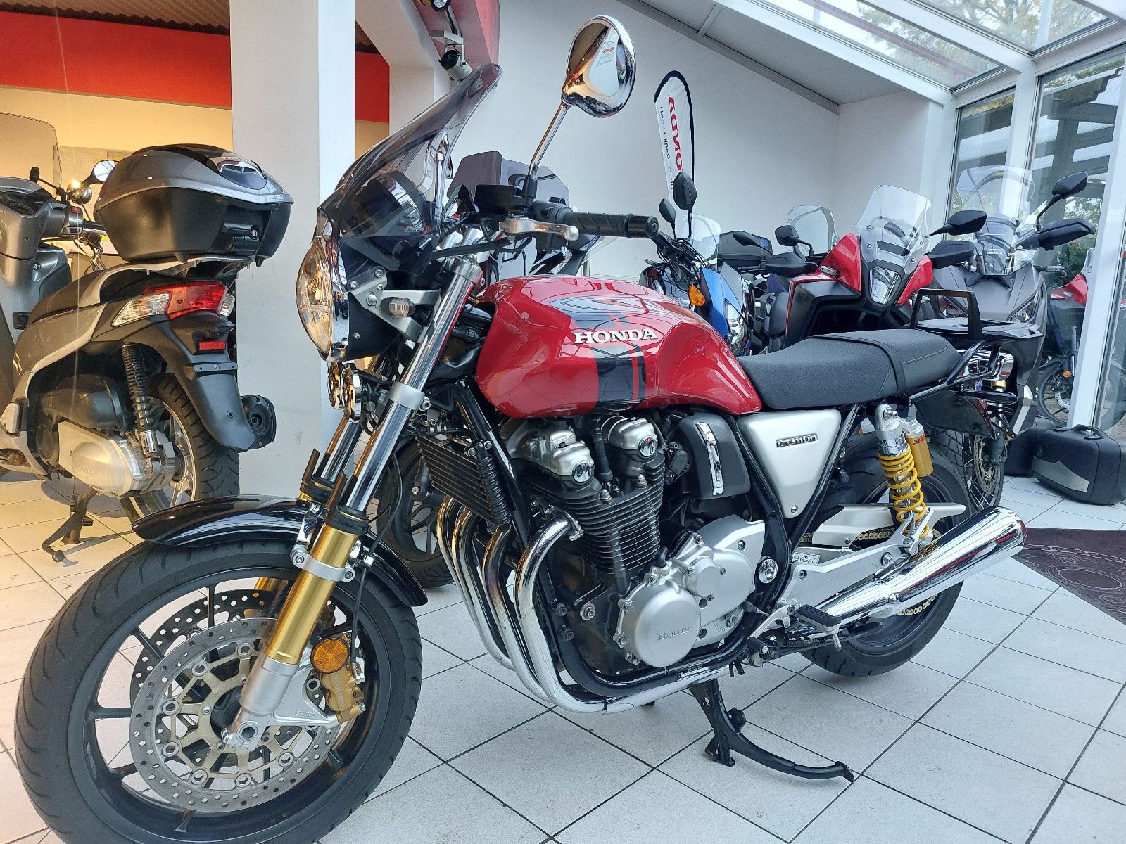 Honda CB1100RS, rot, Gebrauchtfahrzeug, unfallfrei, Puig Windschild, Hepco und Becker Topcaseträger, LED Scheinwerfer (heller als Orginal), Sitzbank neu bezogen.
