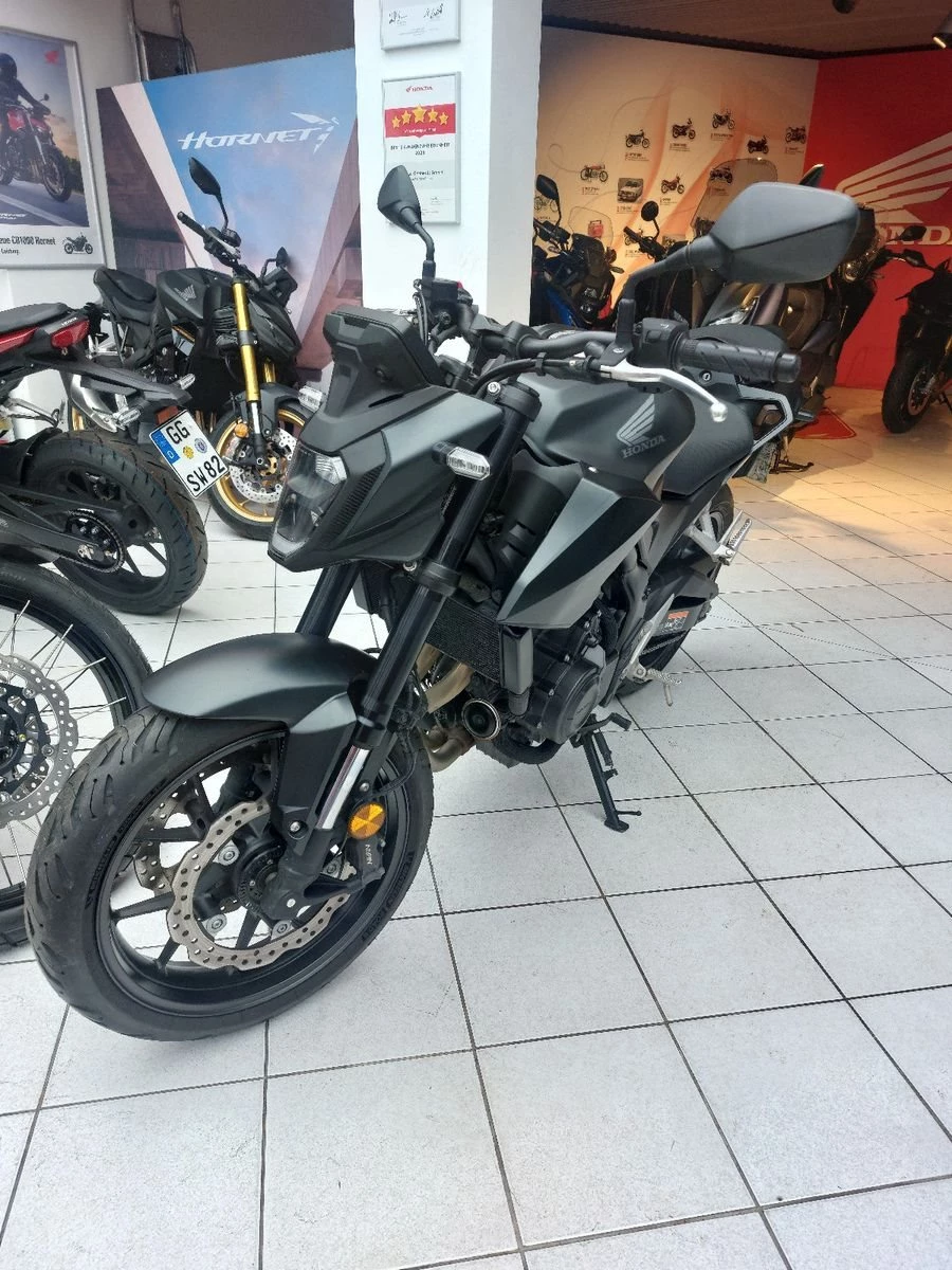 Honda CB500 Hiornet, Gebrauchtfahrzeug, mattschwarz, 5 Zoll TFT Farbdisplay mit Konnektivität, MIVV Slip On Schalldämpfer, HSTC Traktionskontrolle, Notbremssignal, Upside Down Gabel, LED Beleuchtung, Euro 5+, CO2 kombiniert 82g/km, Kraftstoffverbrauch nach WMTC 3,5 l/100Km, Gewicht vollgetank 188kg