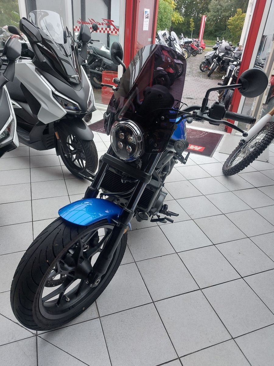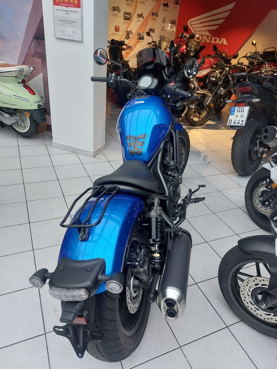 Honda CMX1100 Rebel, Gebrauchtfahrzeug, Modell 2024, Blau Metallic, unfallfrei, Top Zustand, Puig Windschild, Gepäckträger statt Soziussitz (Soziussitz ist dabei), Schaltgetriebe, Euro 5, Verbrauch Honda Messwerte gem. WMTC 4,9 l/100km, CO2 Ausstoss 114 g/km, Euro 5