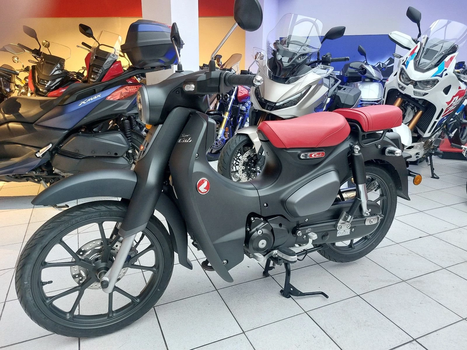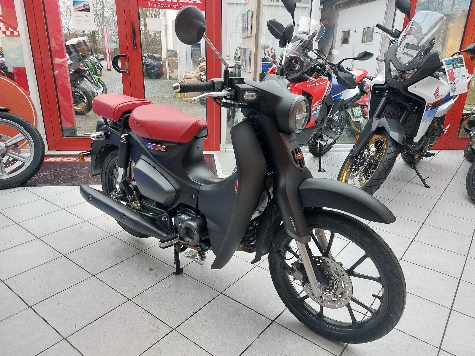 Honda C125 Super Cub, Gebrauchtfahrzeug, mattgrau, ABS (nur Vorderrad), Euro 5, Kraftstoffverbrauch nach WMTC 1,5 l/100km, CO2 Ausstoss 34g/km, 4-Gang Fußschaltung mit automatischer Kupplung, Smart Key System, komplette LED Beleuchtung, Seitenständer nachgerüstet mit Seitenständerschalter zur Zündunterbrechung, TÜV wird bei Verkauf neu gemacht.