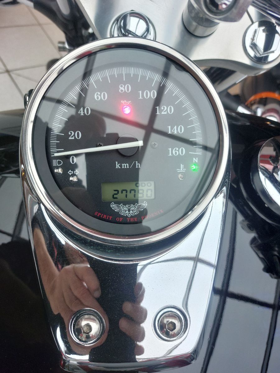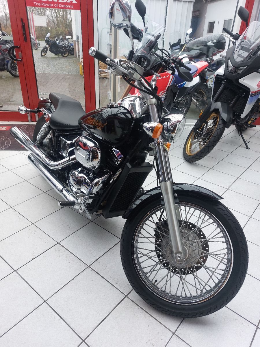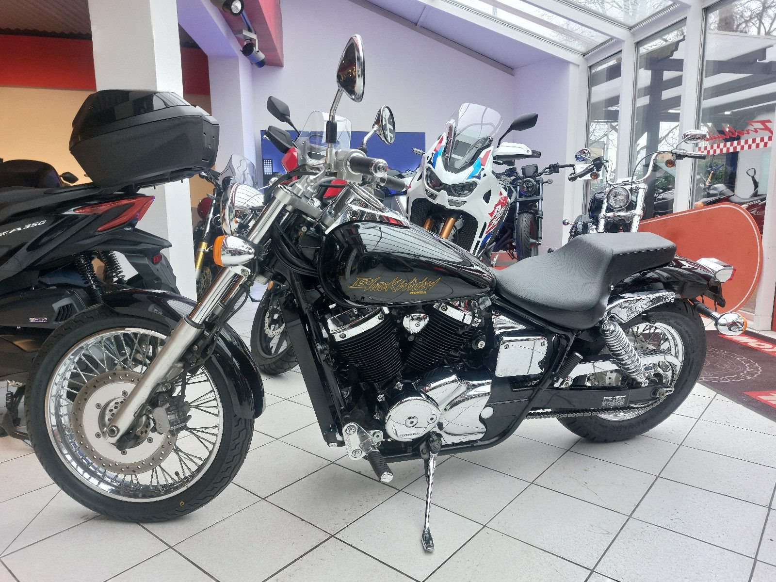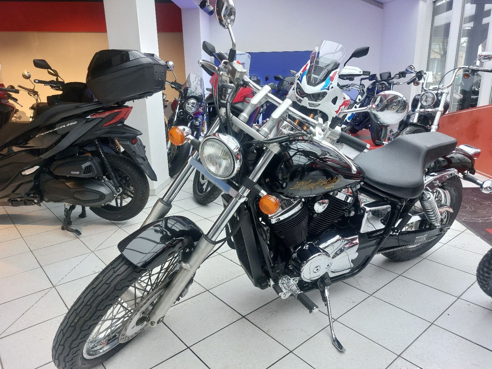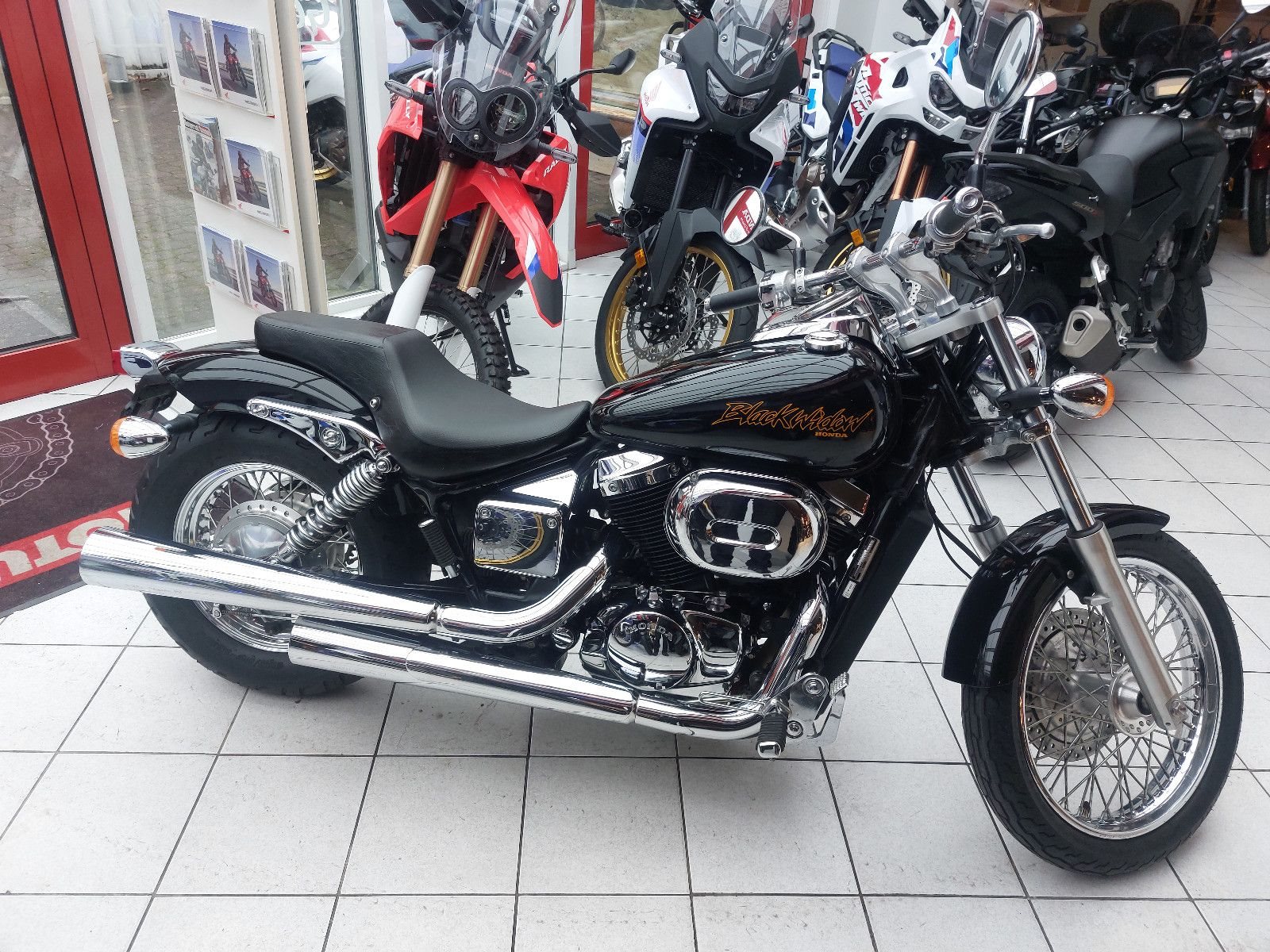 Honda VT750 Black Widow, Gebrauchtfahrzeug, schwarz, Reifen vorne und hinten neu, Kraftstoffhahn neu, Tank gereinigt und innen beschichtet, Vergaser überholt (gereinigt, neue Dichtungen, neue Leerlaufdüsen), frische Inspektion mit Ölwechsel, Bremsflüssigkeitswechsel, neuen Zündkerzen, neuem Luftfilter und Zusatzluftfilter, neuem Kraftstofffilter.
