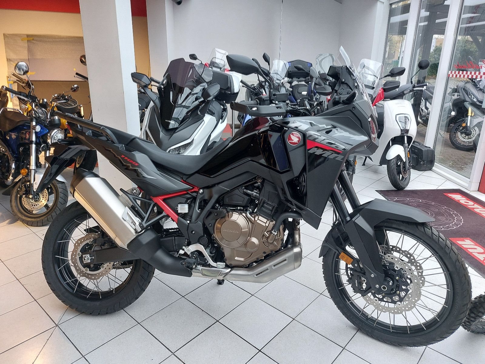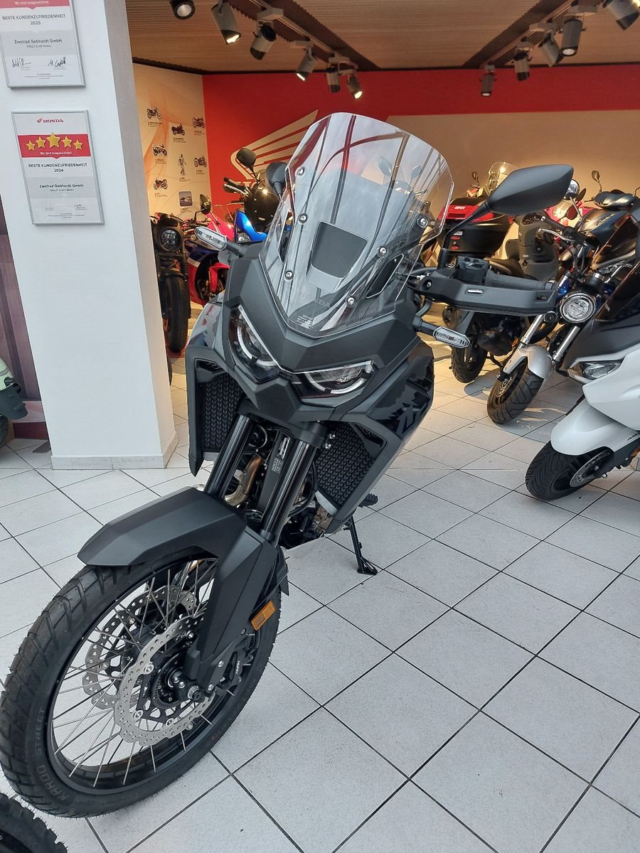 Honda CRF1100 Africa Twin mit Schalt-Getriebe, Modell 2025, Elektronisches Fahrwerk, Neufahrzeug, Tempomat, Griffheizung, Bordsteckdose, TFT Display mit Android Auto und Apple Car Play, automatische Blinkerrückstellung, Kurven ABS, Traktionskontrolle, 21 Zoll Vorderrad, Schlauchlosfelgen, Fahrersitz in zwei Positionen einstellbar.