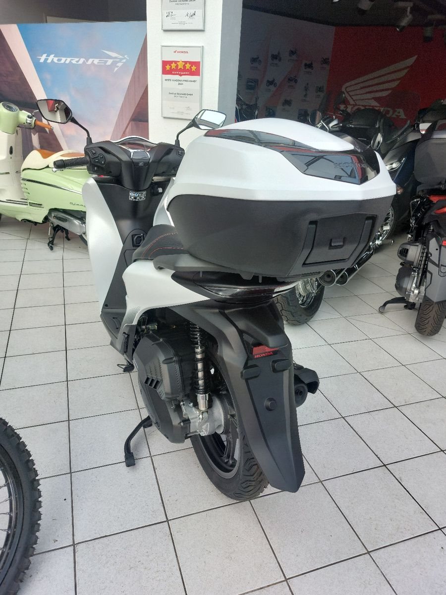 Honda SH125i, Neufahrzeug mit Tageszulassung 11/25, Modell 2025, ABS, LED Rücklicht, LED Scheinwerfer, USB Anschluss, LCD-Display und Smart Key-System, Traktionskontrolle Honda Selectable Torque Control (HSTC), Start-Stopp-Automatik, Topcase in Fahrzeugfarbe, CO2 g/km kombiniert ab Euro 4 (g/km) 50 g/km Abgasverhalten Euro 5+, Benzinverbrauch (Liter pro 100 km (Honda Messwerte gem. WMTC)) 2,2 l/100 km, Leergewicht 138kg vollgetankt.