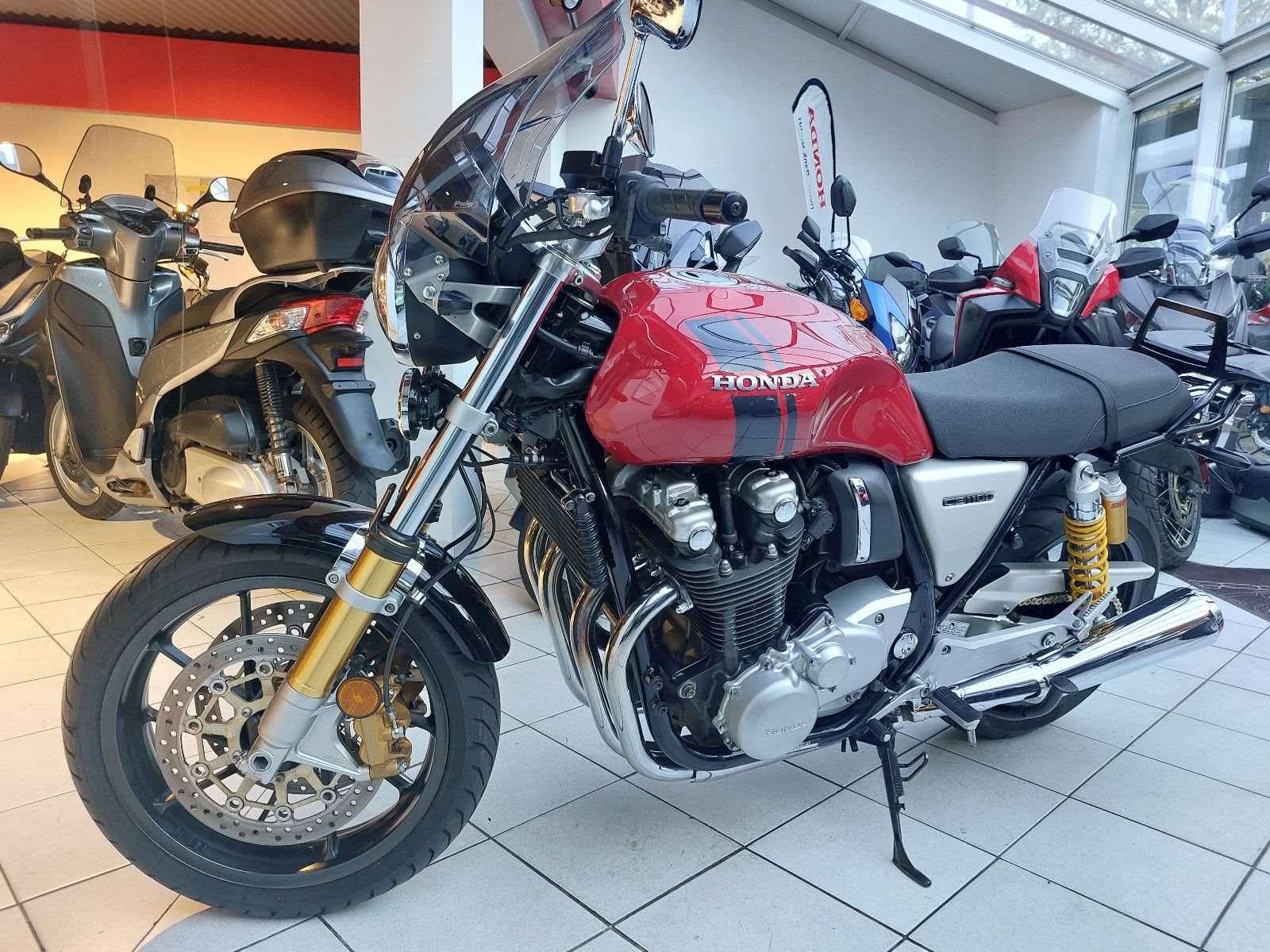 Honda CB1100RS, rot, Gebrauchtfahrzeug, unfallfrei, Puig Windschild, Hepco und Becker Topcaseträger, LED Scheinwerfer (heller als Orginal), Sitzbank neu bezogen.