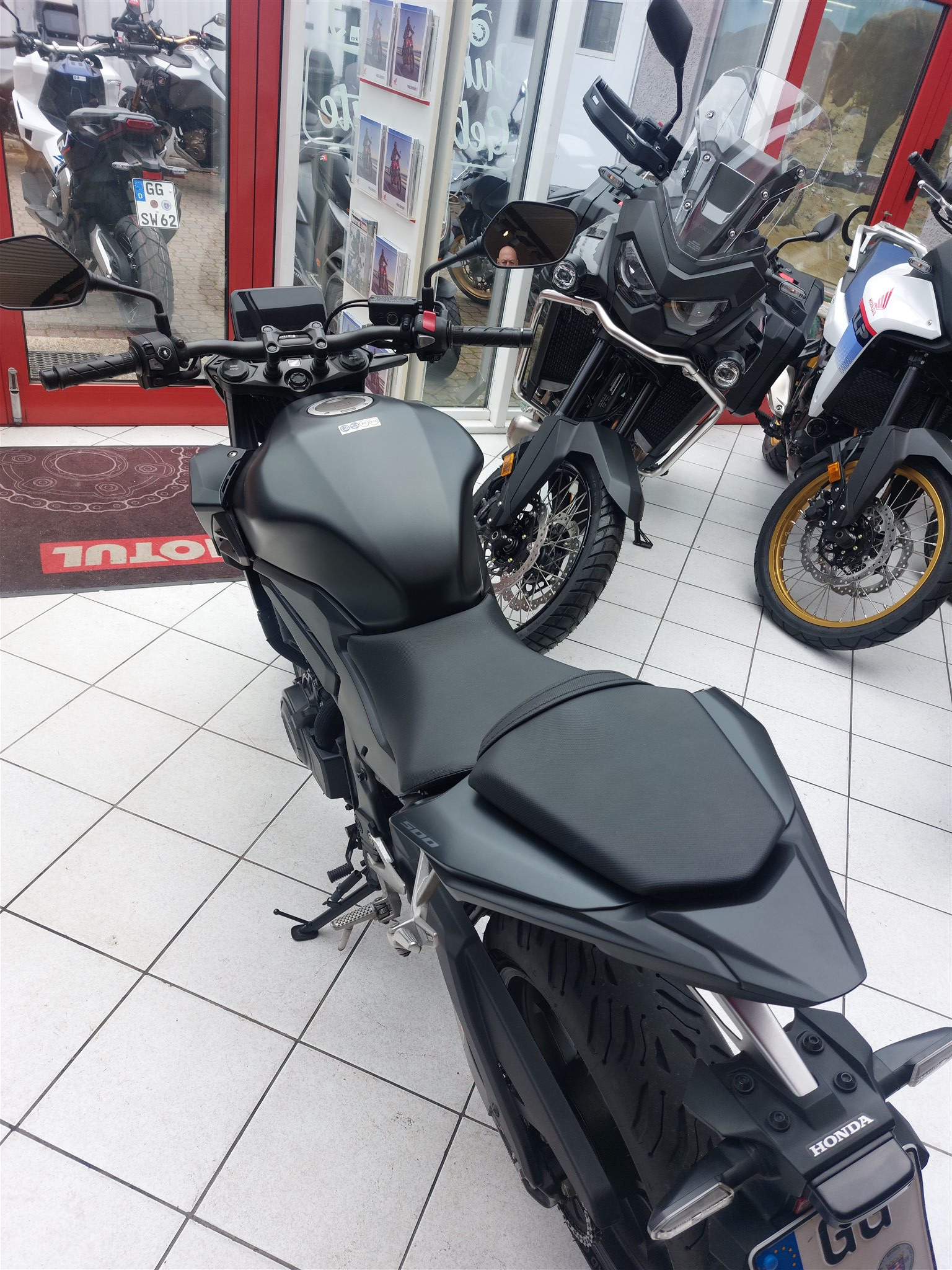 Honda CB500 Hiornet, Gebrauchtfahrzeug, mattschwarz, 5 Zoll TFT Farbdisplay mit Konnektivität, MIVV Slip On Schalldämpfer, HSTC Traktionskontrolle, Notbremssignal, Upside Down Gabel, LED Beleuchtung, Euro 5+, CO2 kombiniert 82g/km, Kraftstoffverbrauch nach WMTC 3,5 l/100Km, Gewicht vollgetank 188kg