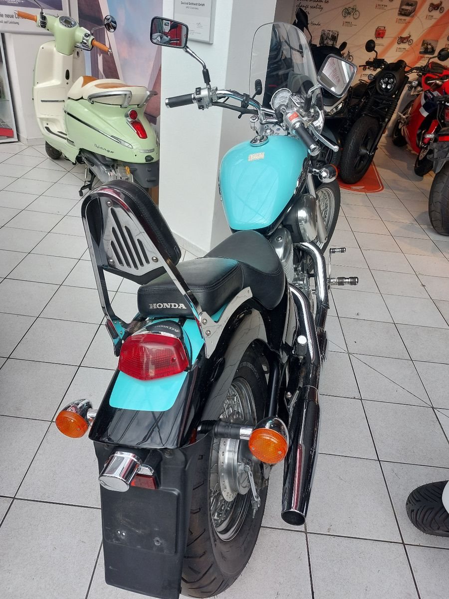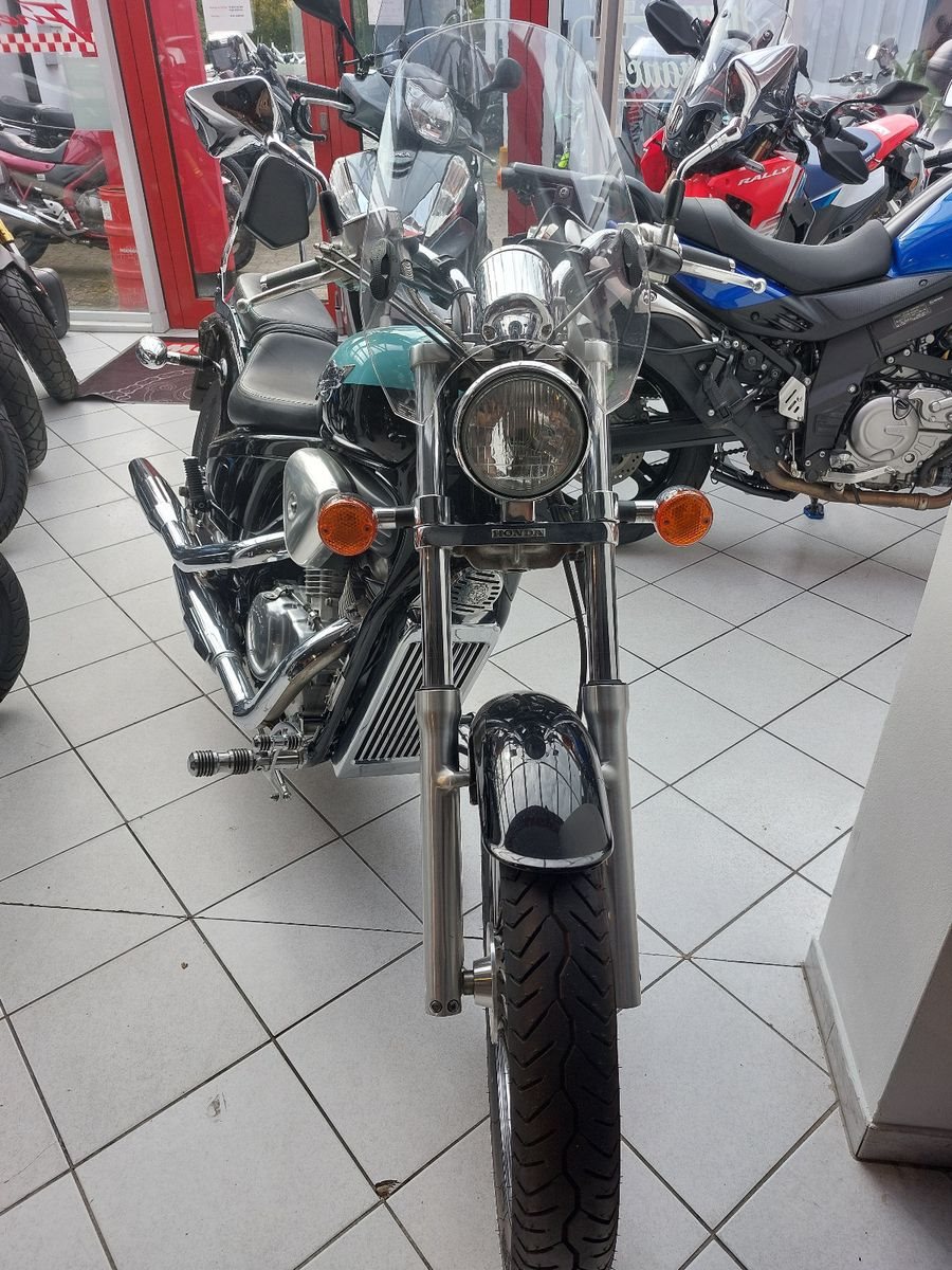 Honda VT600C Shadow, Gebrauchtfahrzeug, Windschild, vorverlegte Fussrastenanlage, Sissybar, verchromter Kühlergrill, Hupencover.
