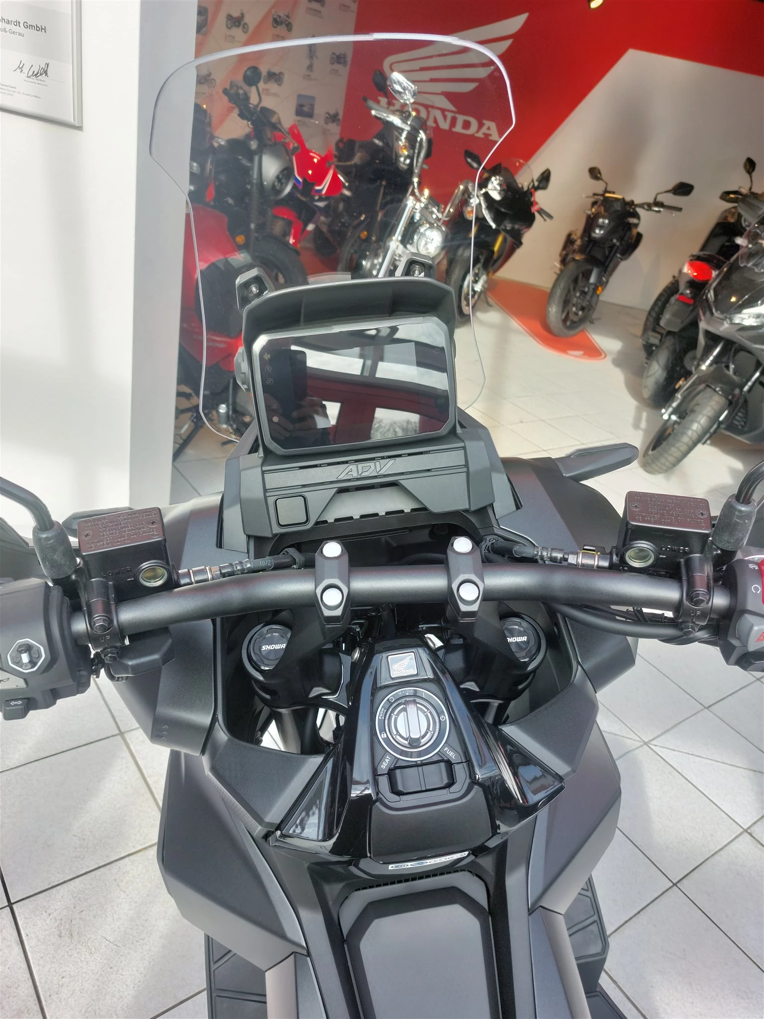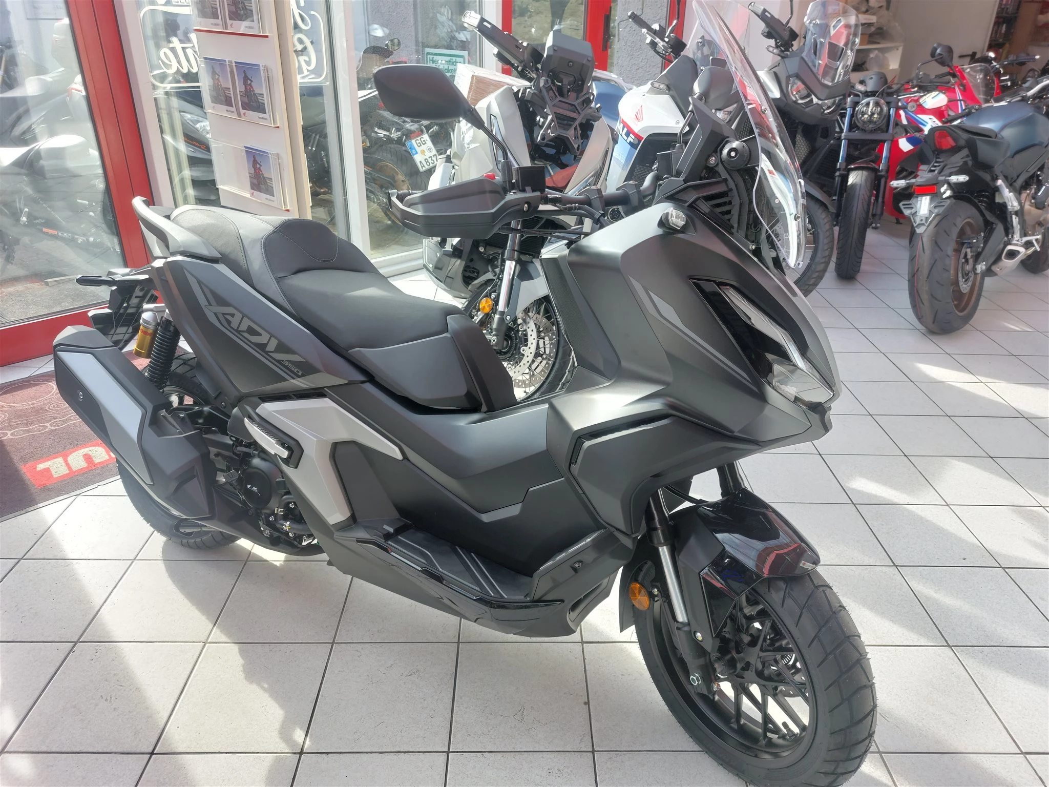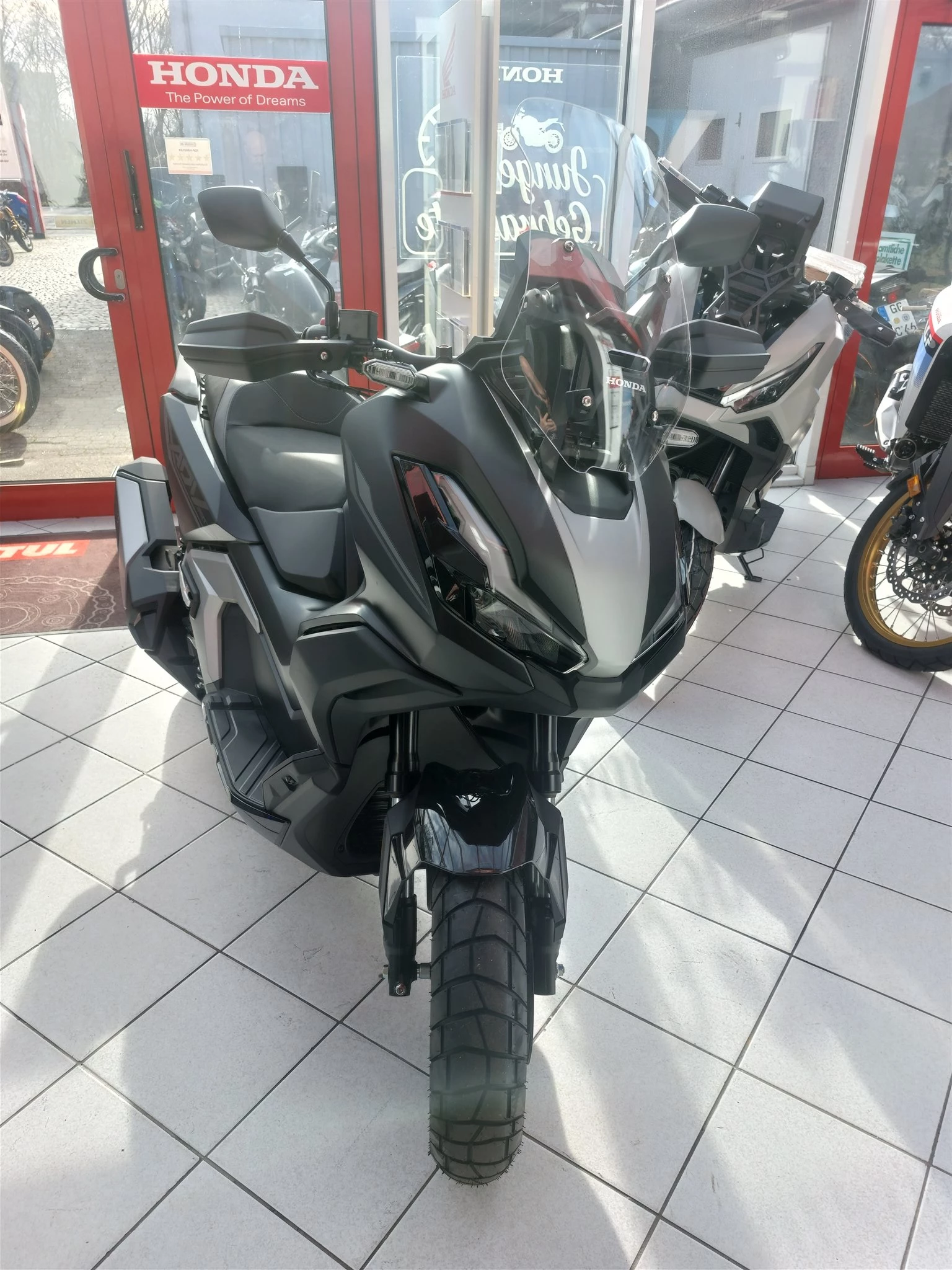 Honda ADV350, Neufahrzeug, Matt Coal Black Metallic, Modell 2025, Maxi Scooter im Adventurelook, TFT-Farb-Display mit Konnenktivität über Honda Road Sync App.