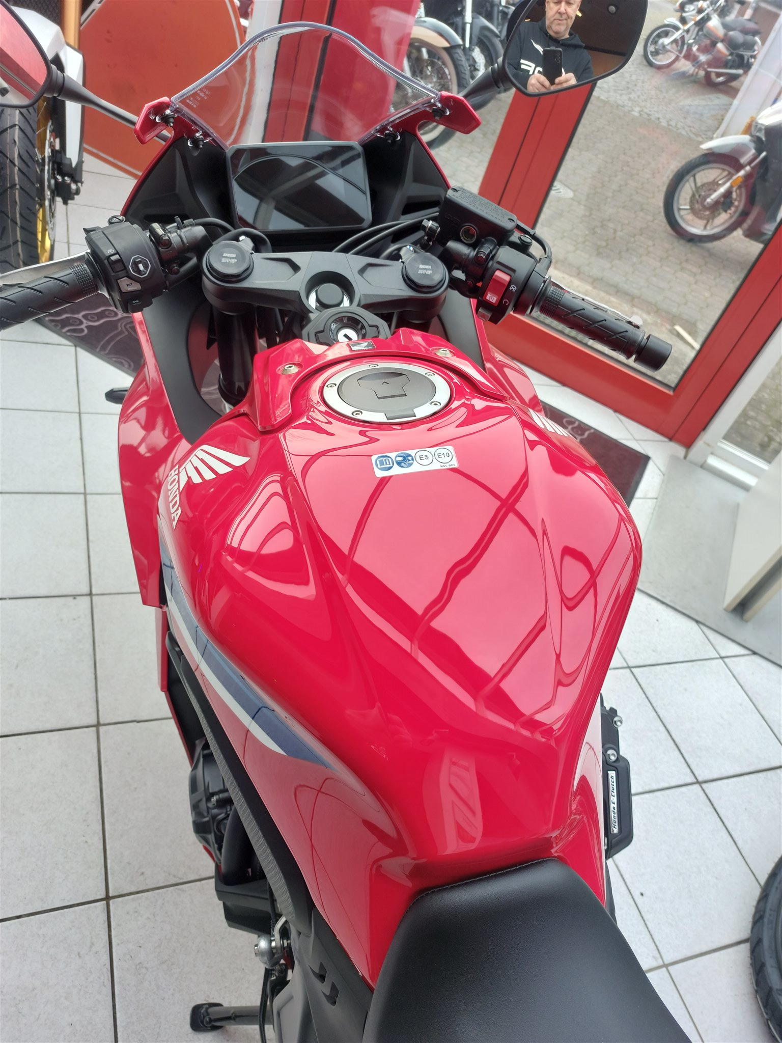 Honda CBR650R E-Clutch, Neufahrzeug, grand prix red, 35KW Drosselung gegen Aufpreis möglich, TFT Farbdisplay mit Konnektivität über Honda Road Sync App, 6 Gang Schaltgetriebe mit elektronischer Kupplung.