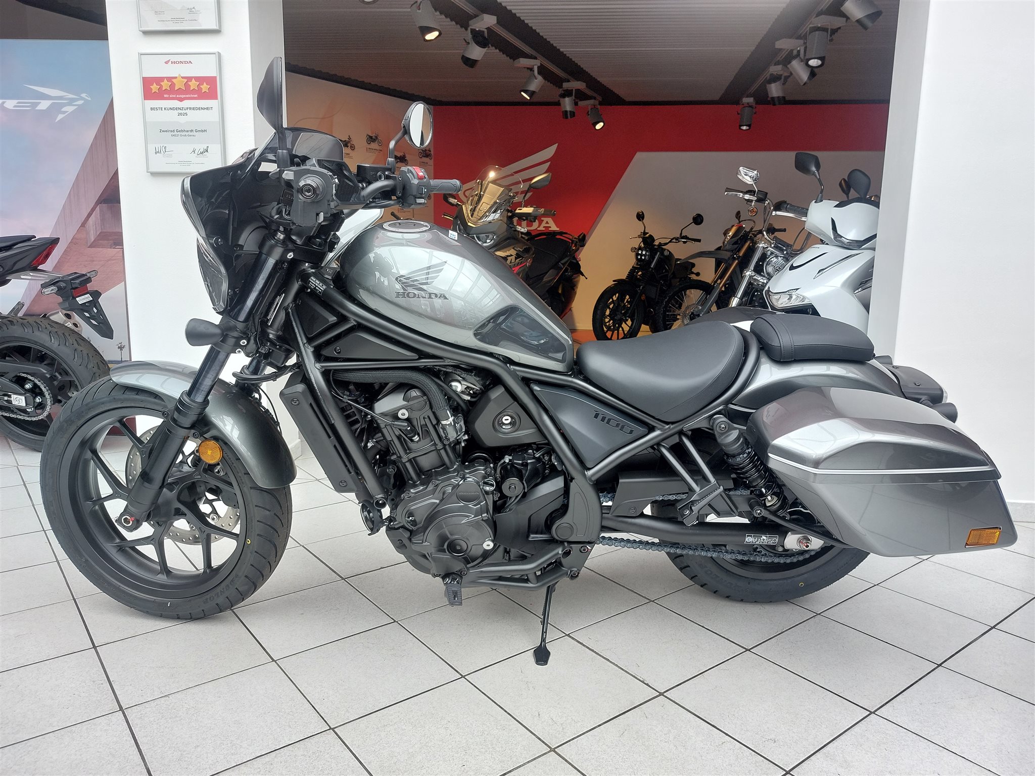 Honda CMX1100 Rebel, Neufahrzeug, Modell 2025, Blau, DCT-Getriebe, Euro 5+, Verbrauch Honda Messwerte gem. WMTC 5,3 l/100km, CO2 Ausstoss 123 g/km, Lenkerendspiegel Honda Orginalzubehör.
