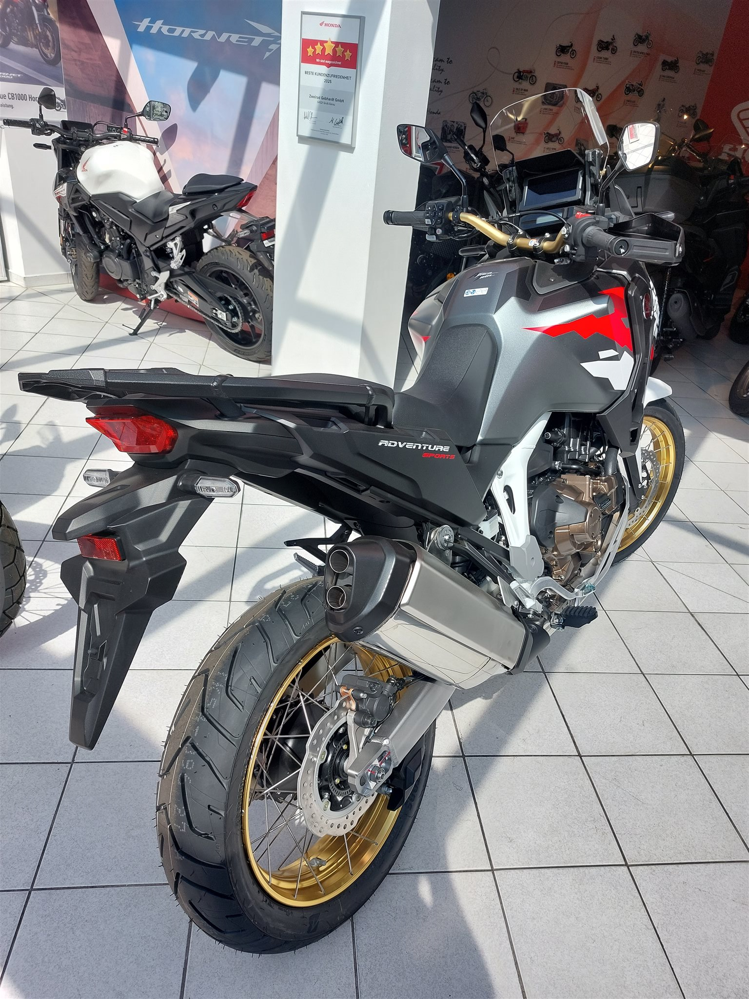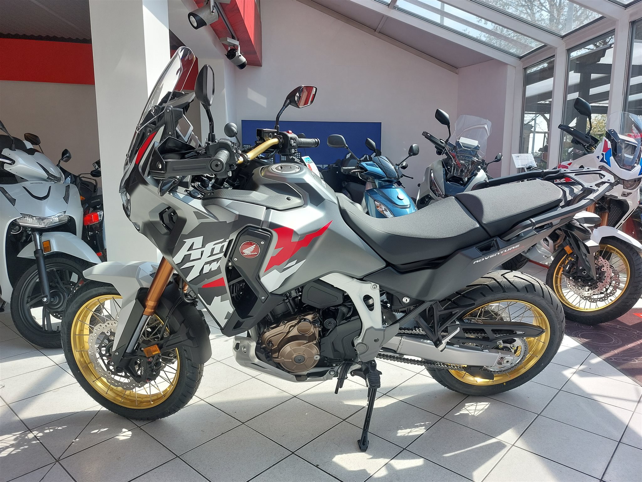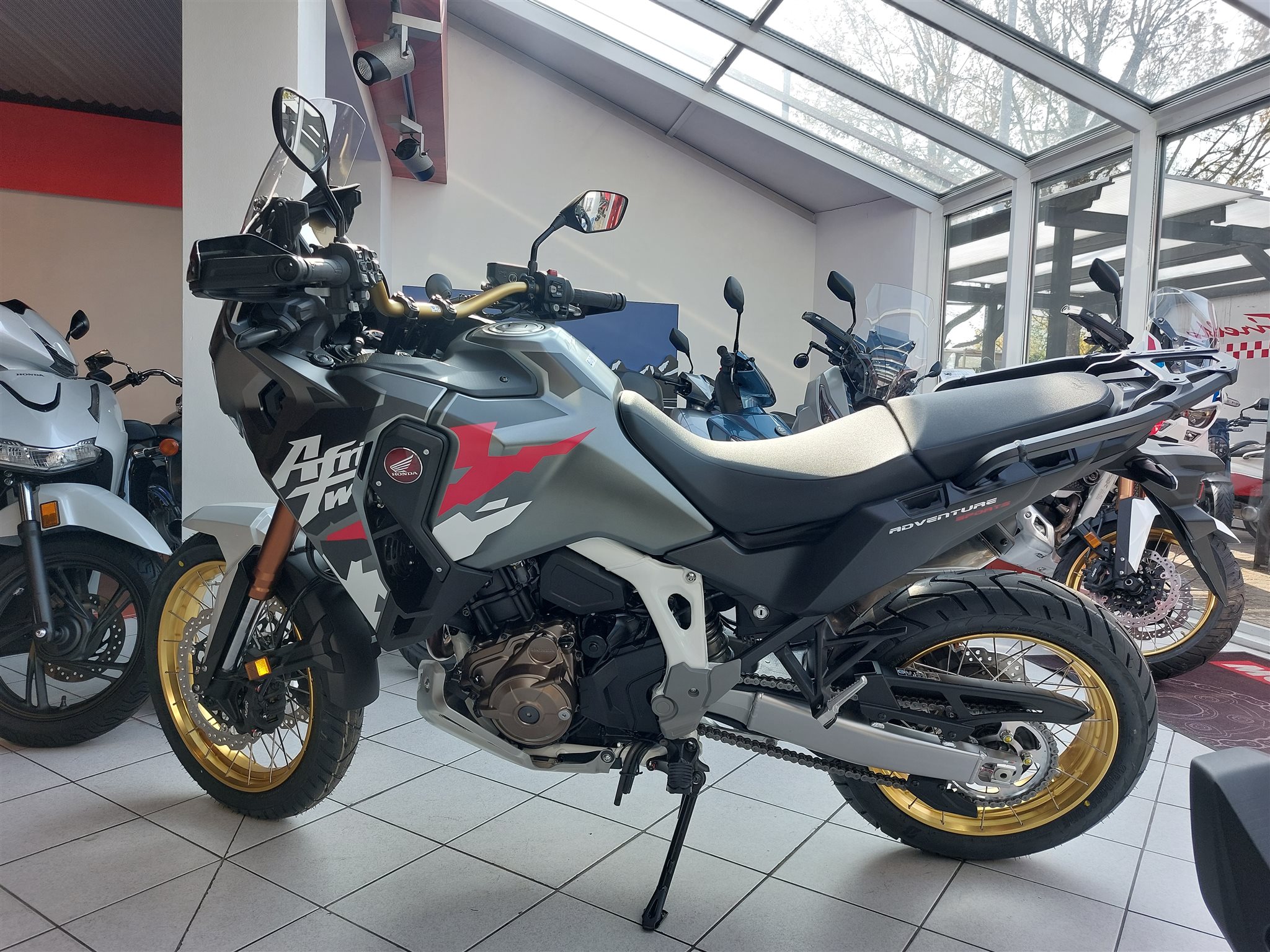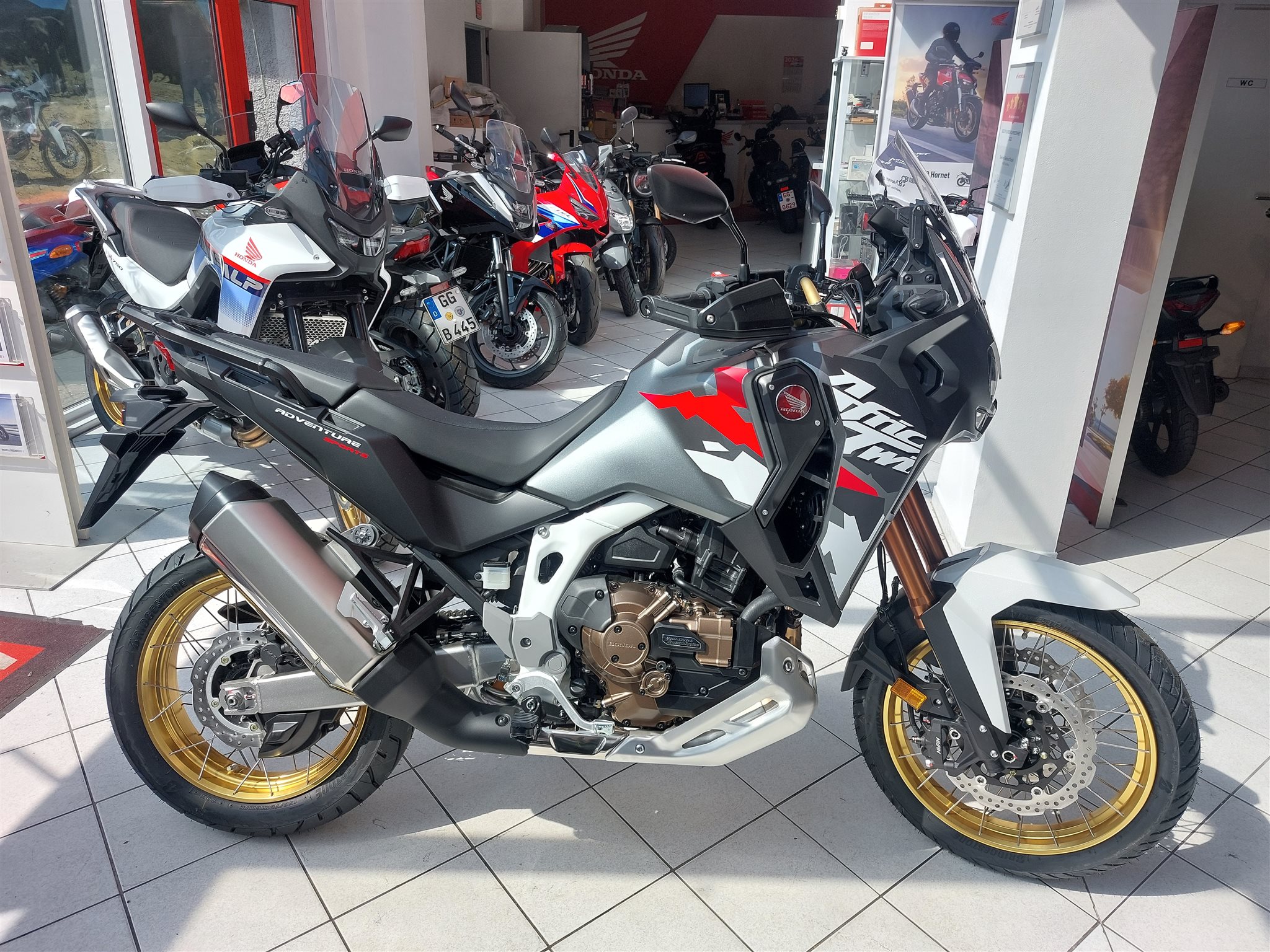 Honda CRF1100 Adventure Sports mit DCT-Getriebe, Modell 2026, Neufahrzeug, Tempomat, Griffheizung, TFT Display mit Android Auto und Apple Car Play, automatische Blinkerrückstellung, Kurvenlicht, Kurven ABS, Traktionskontrolle, 19 Zoll Vorderrad, Schlauchlosfelgen, Fahrersitz in zwei Positionen einstellbar, Verbrauch nach WMTC 4,9l/100km, CO2 Ausstoss 114 g/km,